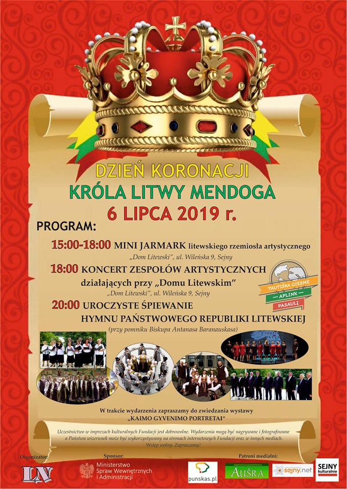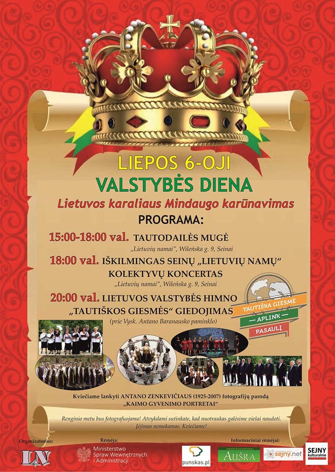 W Sejnach, Fundacja "Dom Litewski" w Sejnach ( "Lietuvių namai" Seinuose) organizuje obchody 6 lipca br. od godziny 15.00. Uroczystości odbywać się będą w Domu Litewskim przy ulicy Wileńska 9.