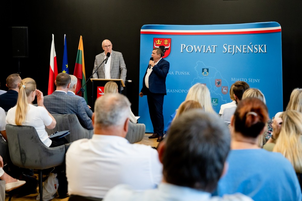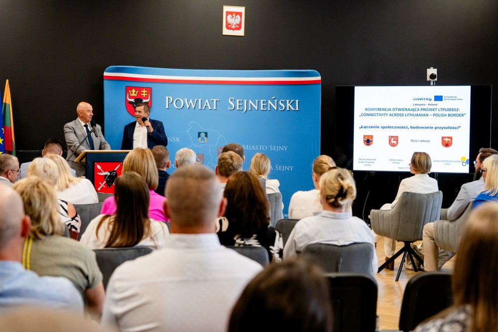 Konferencja odbyła się wczoraj w Sejnach, gdyż dotyczy projektu strategicznego „Connectivity across Lithuanian – Polish border”, którego liderem jest Powiat Sejneński. Jest on realizowany w ramach programu INTERREG VI-A Litwa–Polska 2021-2027. Projekt zakłada wiele wspólnych działań między partnerami: Powiatem Sejneńskim, Gminą Sejny, Via Lietuva i samorządem regionu Łoździeje, ale przede wszystkim remont ważnych odcinków dróg na polsko-litewskim pograniczu.