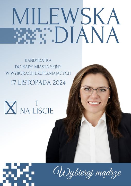 „Dnia 17 listopada 2024 roku w okręgu nr 15 (obejmującym ul. A. Mickiewicza, Dr E. Rittlera, Leśną, Łączną, Niecałą, Projektowaną III, Szkolną, Targową oraz Żwirki i Wigury) odbędą się wybory uzupełniające do Rady Miasta Sejny. Ma to związek ze zrzeczeniem się mandatu przez Radną, która dotychczas reprezentowała nasz okręg w Radzie Miasta Sejny.