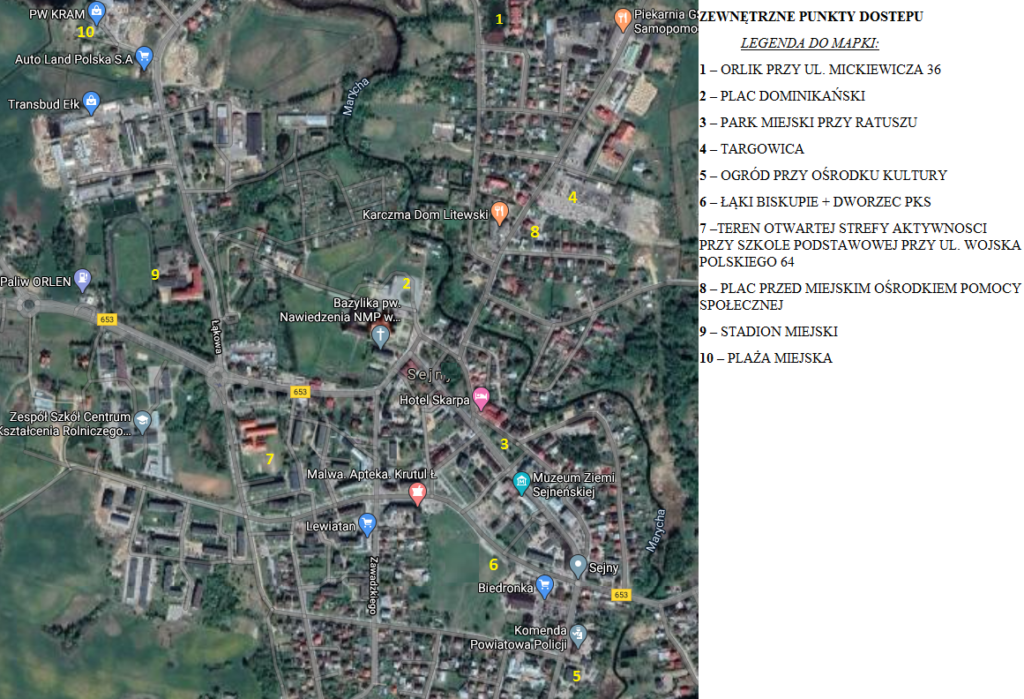 Urząd Miejski w Sejnach zaprasza mieszkańców i turystów do czynnego korzystania z dostępu do szybkiego Internetu WiFi4EU w 10 punktach na terenie miasta Sejny:
