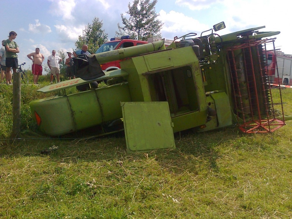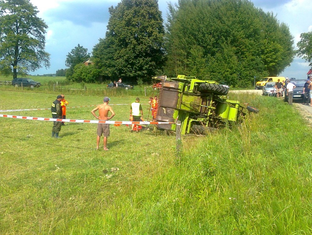 Do wypadku doszÅ‚o w poniedziaÅ‚ek tuż przed godzinÄ… 15.00 w leżącej w gminie Raczki miejscowoÅ›ci Sidory. Kombajn, który przejeżdżaÅ‚ przez tamtejsze skrzyżowanie ulegÅ‚ awarii. Maszyna zjechaÅ‚a na skarpÄ™ drogi i przewróciÅ‚a siÄ™ na bok. 55-letni kombajnista wypadÅ‚ z maszyny. Przybyli na miejsce strażacy znaleźli go kilka metrów od pojazdu.