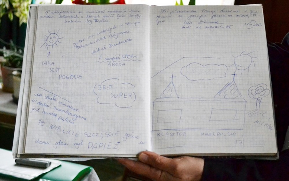- Chcą was odwiedzić księża biskupi i jakiś kardynał z Watykanu. Dobrze by było, by wszystkie dzieci były w domu. Goście będą po śniadaniu, więc niczego nie szykujcie. Będą około godziny 9.30”.Wspominając moment przyjazdu papieża mówił pan, że po otwarciu drzwi papamobile najpierw zobaczyliście ręce a w nich różaniec, po którym pani Zofia, mama pani Bożeny, poznała Ojca Świętego.