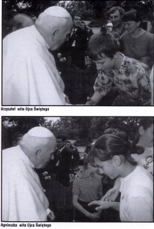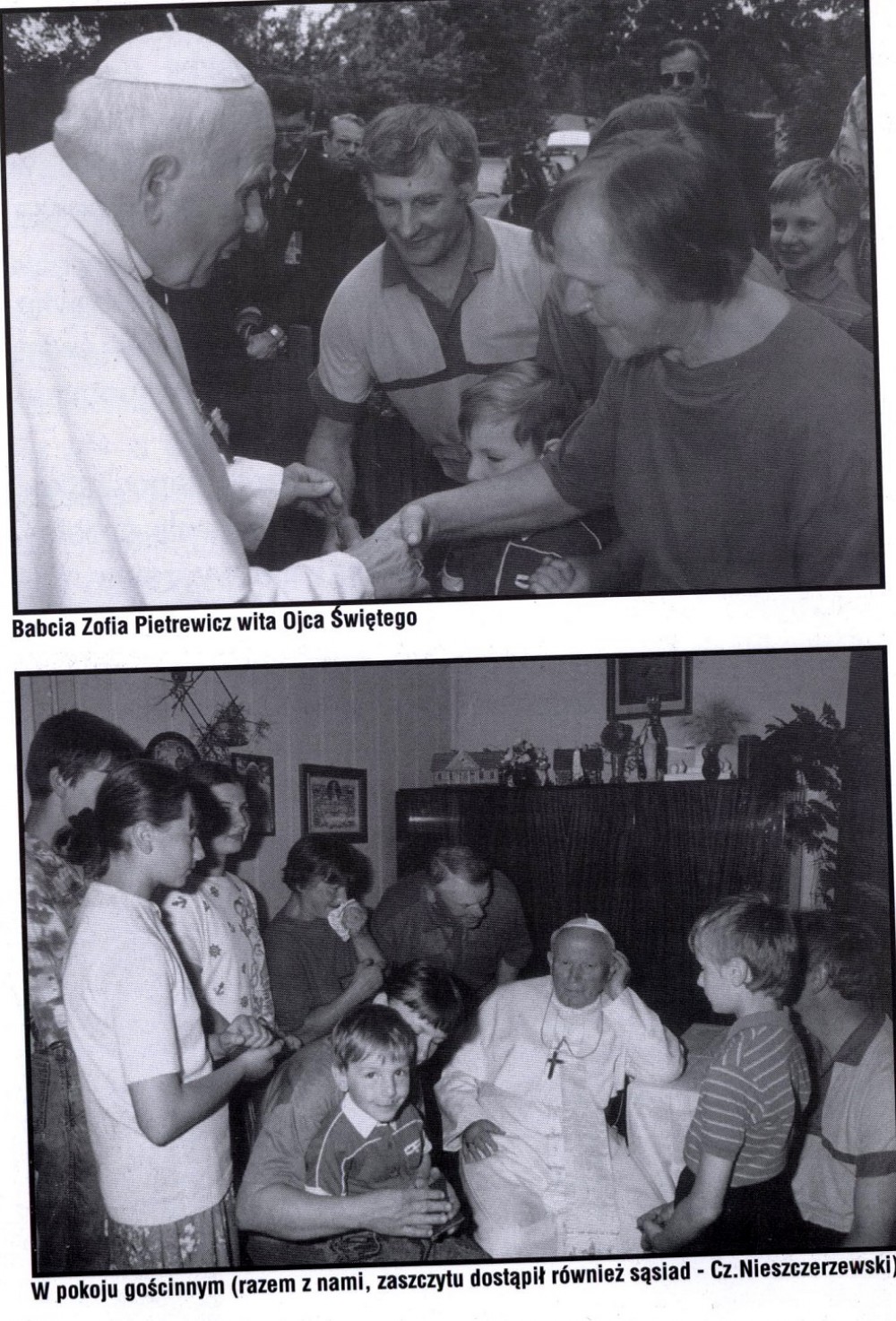 St. Milewski: Kiedy papież wysiadł z samochodu zdołałem tylko wykrztusić z siebie: Ojcze Święty, witamy Cię. Jaki to dla nas zaszczyt. I łzy popłynęły z oczu. Któryś z księży pochylił się nad nami i rzekł po cichutku: Nie płaczcie. Uklękliśmy, najpierw babcia, później my. Papież nas pobłogosławił, a ja zaprosiłem go w nasze skromne progi...