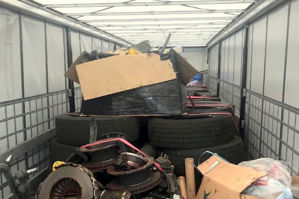 Funkcjonariusze podlaskiej KAS skontrolowali na drodze S8 w Jeżewie litewską ciężarówkę. Zgodnie z dokumentami miała przewozić z Belgii na Litwę części oraz płyny eksploatacyjne do samochodów. Podczas kontroli okazało się, że w naczepie znajdowało się ponad 11 t starych akumulatorów i opon, zużytych płynów chłodniczych oraz uszkodzonych części do samochodów. Wojewódzki Inspektorat Ochrony Środowiska w Białymstoku potwierdził, że przewożony towar to odpady.