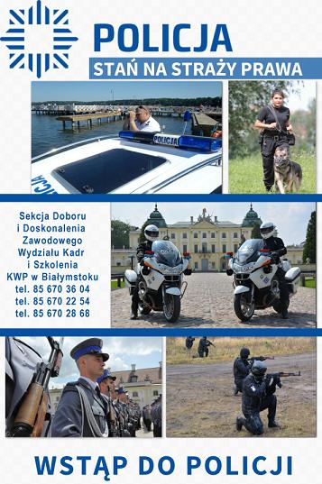 W 2017 roku prowadzone będą nabory do następujących jednostek Policji na terytorium województwa podlaskiego: