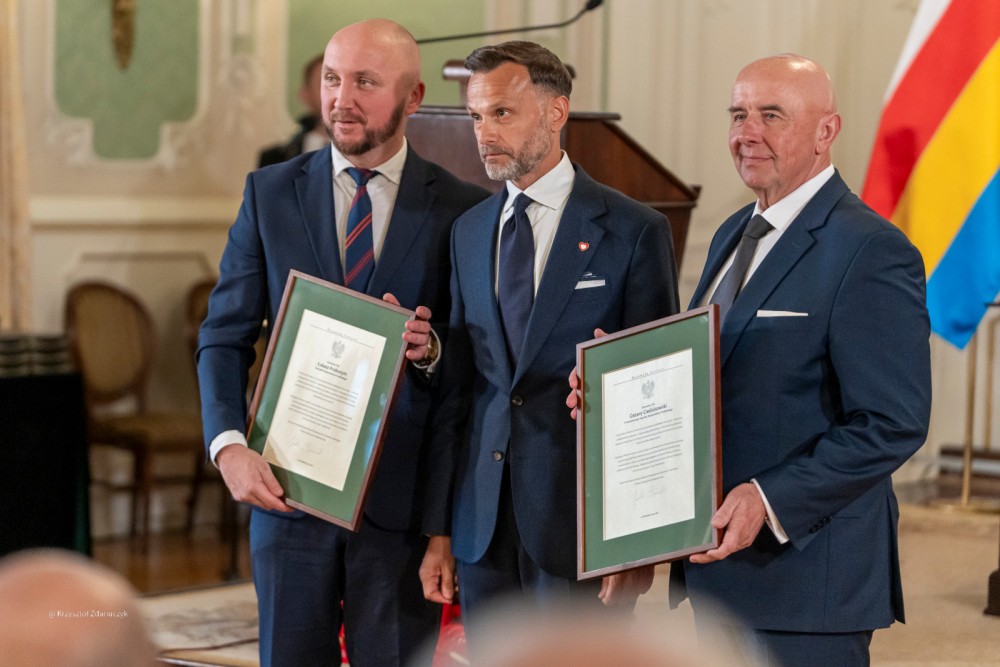 Medal Senatu Rzeczpospolitej Polskiej z okazji jubileuszu Województwa Podlaskiego na ręce przewodniczącego sejmiku Cezarego Cieślukowskiego wręczyli: wicemarszałek Senatu Maciej Żywno oraz senatorowie: Anna Bogucka i Marek Adam Komorowski.