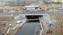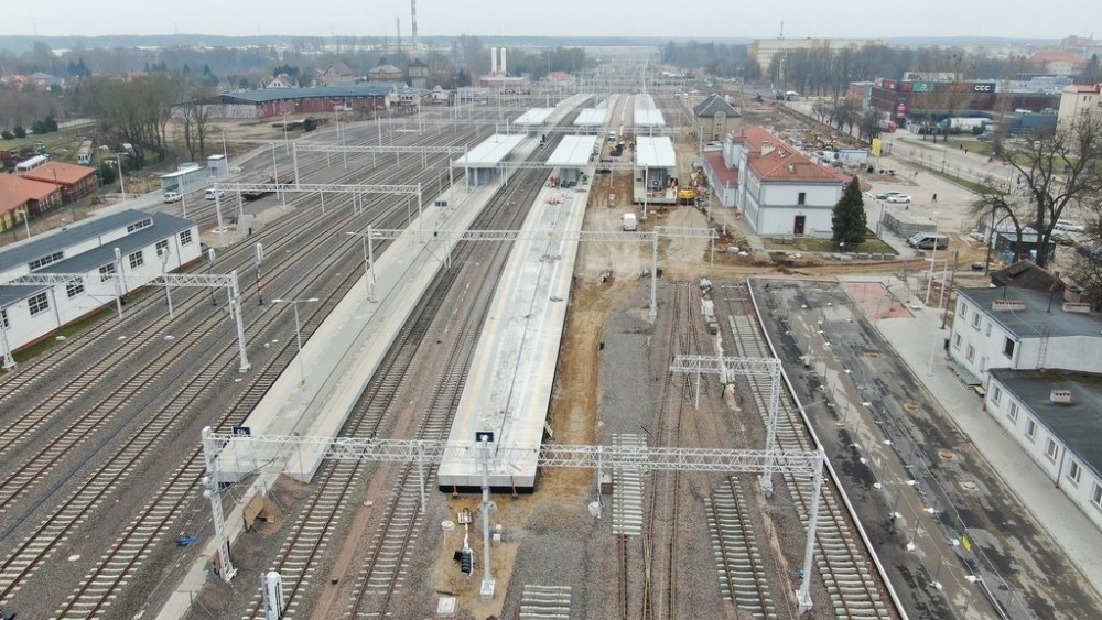 Ostatni etap betonowania konstrukcji prowadzony jest także na budowie mostu nad rzeką Ełk. Na potrzeby tego etapu przygotowano tymczasową podporę w nurcie rzeki, zbrojenia i szalunki. Tuż obok, po gotowej części przeprawy, prowadzony jest ruch pociągów. Konstrukcja nowego wiaduktu nad ul. Kolejową jest gotowa, trwają natomiast prace przy przebudowie ulicy, w tym zabezpieczeniu przed wodą. Kierowcy bezpiecznie przejadą w tym miejscu pod torami w maju. Gotowa jest także konstrukcja nowego wiaduktu kolejowego nad ul. Towarową. Kończą się prace związane z zabudową torów. Trwa budowa układu drogowego, w tym ronda.