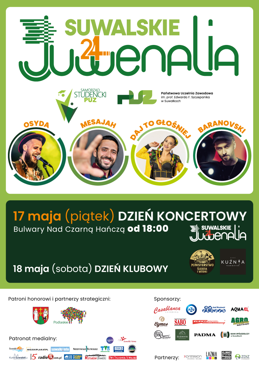 Piątek, 17 maja - Dzień Koncertowy: Osyda, Mesajah, Daj to Głośniej, Baranovski.