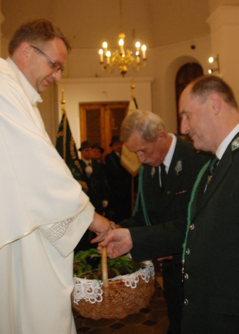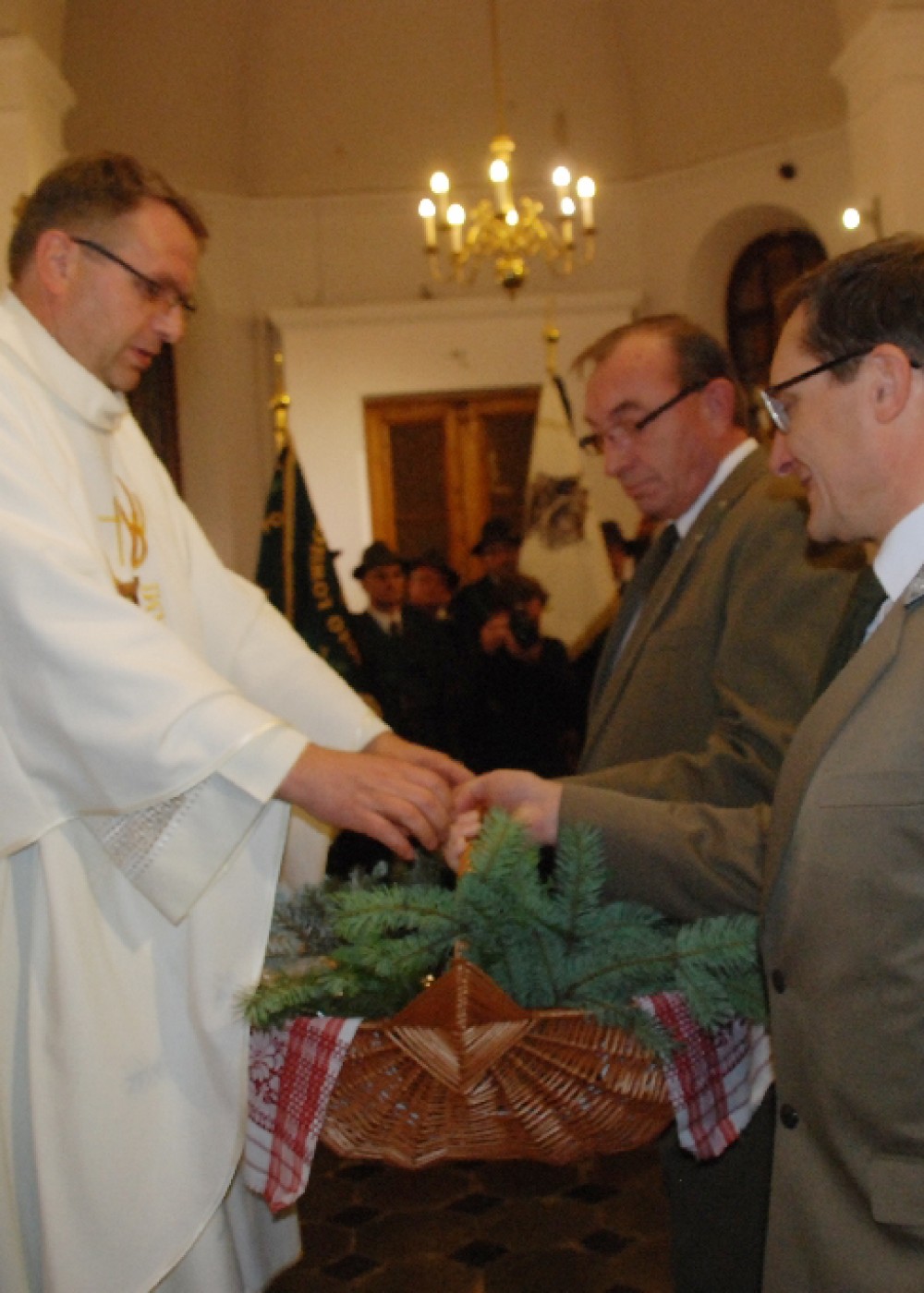 W trakcie mszy w poczet członków Polskiego Związku Łowieckiego przyjęto czterech nowych myśliwych, których po złożeniu ślubowania, że będą: „... przestrzegać sumiennie praw łowieckich, postępować zgodnie z zasadami etyki łowieckiej, chronić przyrodę ojczystą, dbać o dobre imię Polskiego Związku Łowieckiego i godność polskiego myśliwego”, pasowano na myśliwych: „na chwałę polskiego łowiectwa, niech Ci bór darzy”.