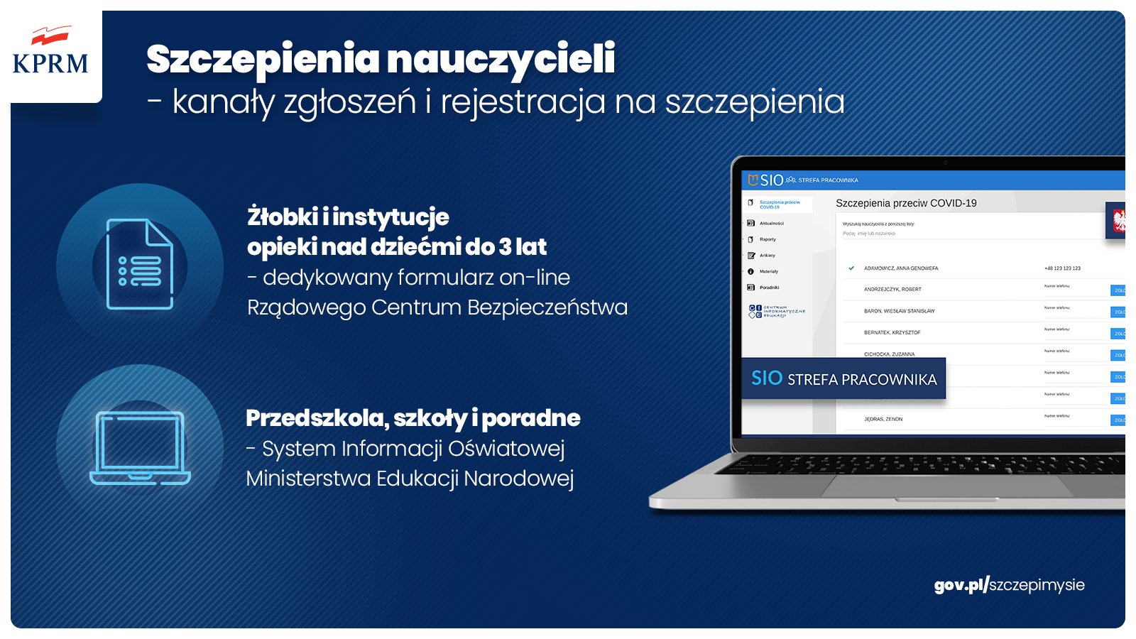 - Od 8 lutego - czyli od najbliższego poniedziaÅ‚ku pracownicy bÄ™dÄ™ mogli poprzez swoich pracodawców, czyli poprzez dyrektorów być zgÅ‚aszani". Na stronie RzÄ…dowego Centrum BezpieczeÅ„stwa bÄ™dzie wywieszony stosowny formularz - dodaÅ‚a Marlena MalÄ…g.