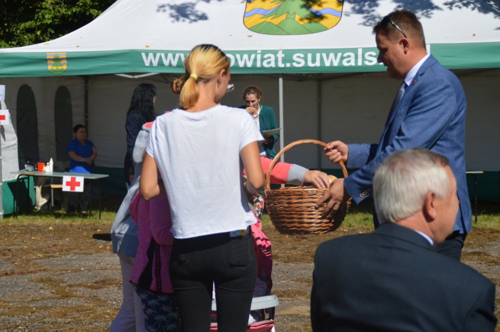 Uroczystości rozpoczęły się od polowej mszy świętej na boisku szkolnym w Dowspudzie. Po niej wszystkich zgromadzonych powitali starosta Powiatu Suwalskiego Witold Kowalewski, Wójt Gminy Raczki Andrzej Szymulewski oraz starostowie dożynek – Katarzyna Wasilewska – Bagan i Łukasz Bagan. Po tradycyjnym obrzędzie dzielenia się chlebem wyróżniającym się rolnikom z powiatu suwalskiego wręczone zostały medale. Otrzymali je: