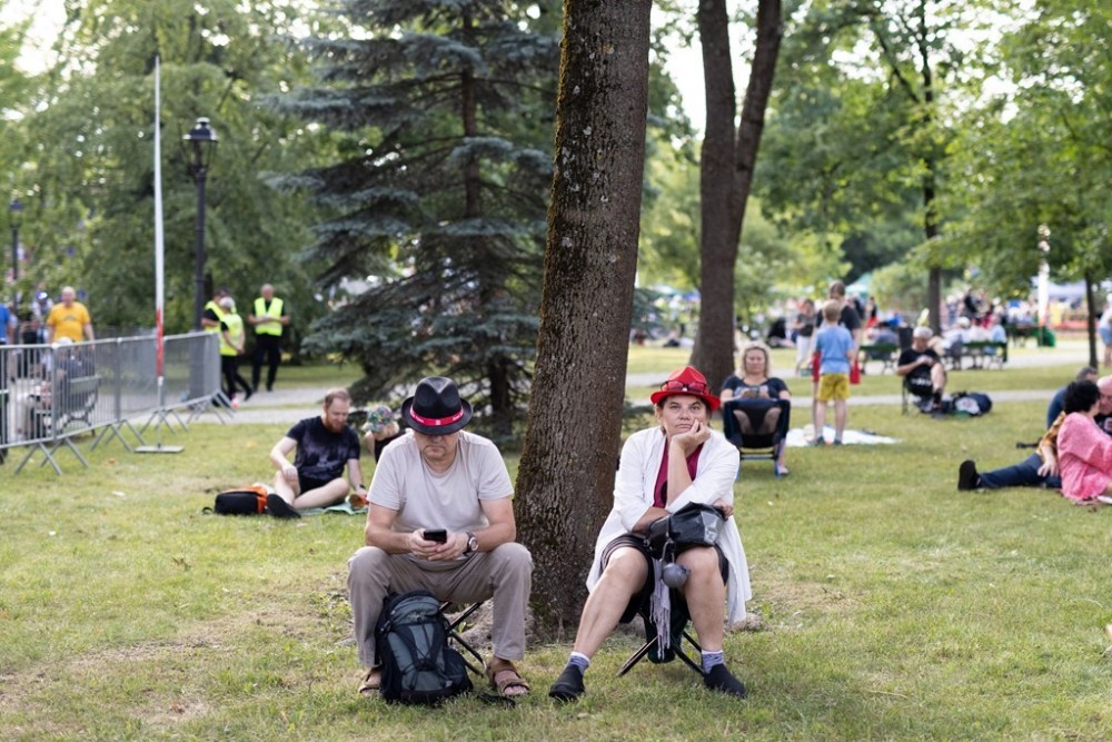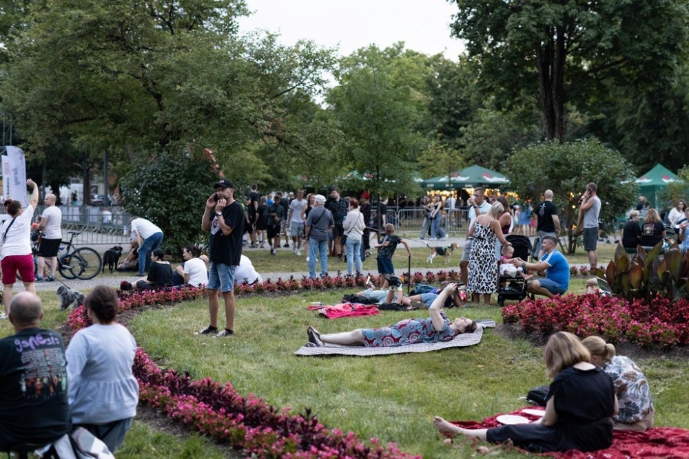 Mimo późnej pory otwarte i zapełnione kawiarnie, lodziarnie, bary. Zabawa przed głównymi scenami, a w całym Parku Konstytucji jeden wielki piknik w ciepły letni wieczór i pewnie przez całą tropikalną noc.