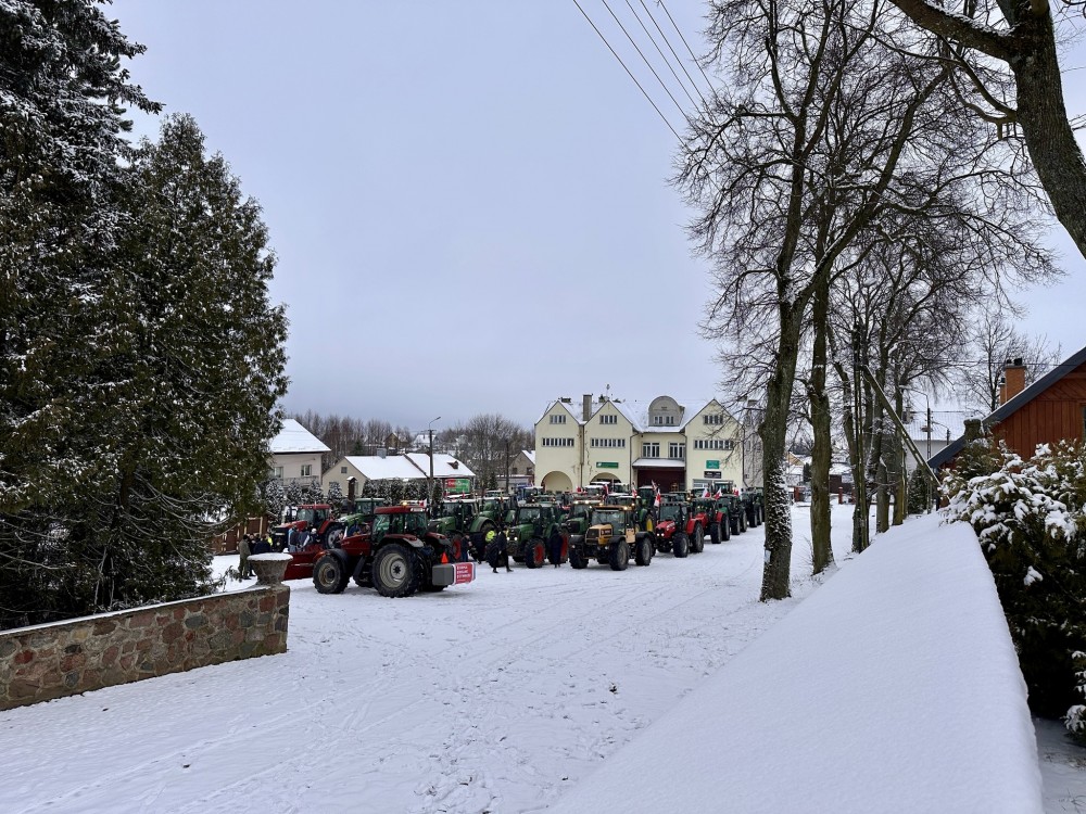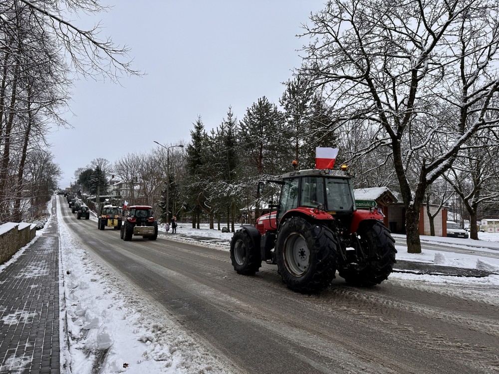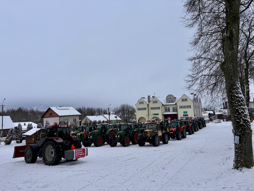 Trwa bardzo duży protest rolników na Suwalszczyźnie. Kolumna pojazdów ma przejechać z Żubryna do Suwałk i przez kilka godzin poruszać się po mieście.