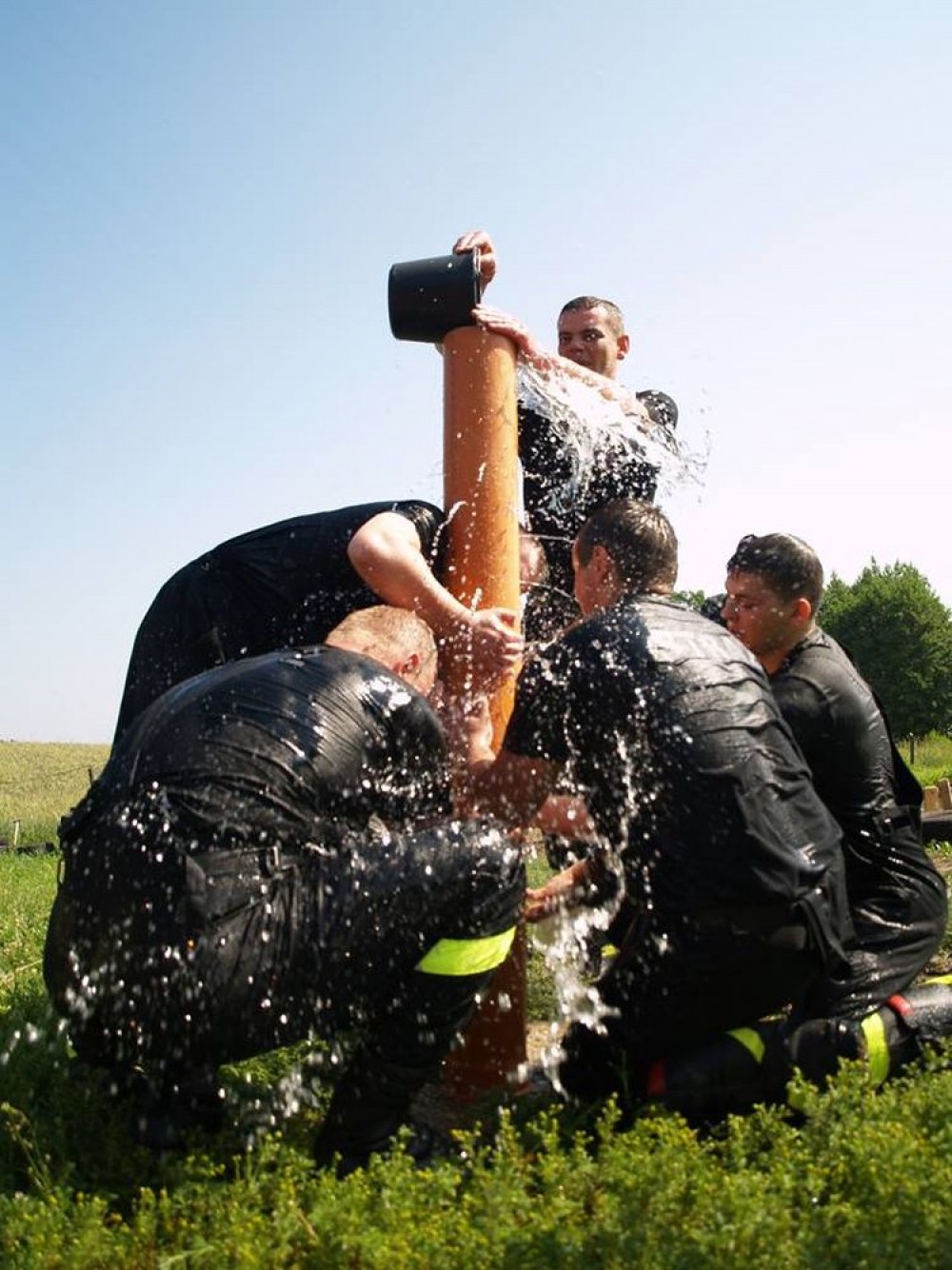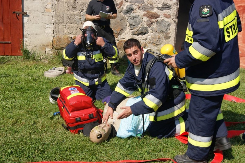 Druhowie na pierwszym punkcie kontrolnym natknęli się na topielca. Sprawdzano, czy prawidłowo wyciągną poszkodowanego z wody oraz to, jak udzielą mu pierwszej pomocy. Kilka metrów dalej czekała na nich obora w której zainscenizowano pożar. Samo gaszenie ognia to tylko część wyzwania. Strażacy musieli również znaleźć poszkodowanego, który się w budynku się znajdował.
