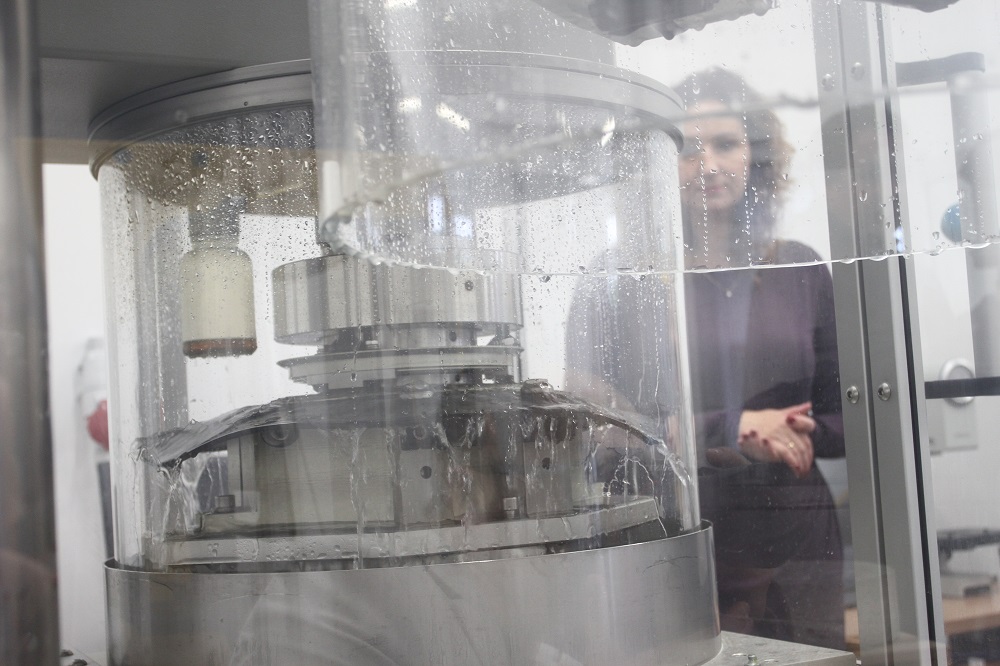 - Aparatura składa się z dwóch komór. W pierwszej komorze jest przeprowadzana symulacja ruchu drogowego i zjawiska, które zachodzą na styku nawierzchni i opony. Druga komora pozwala na obserwowanie badań siły tarcia, które występują podczas hamowania opony i nawierzchni - mówiła.