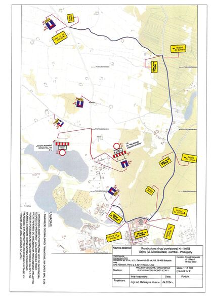 W związku z trwającymi pracami drogowymi związanymi z przebudową przepustów pod drogą, droga na tym odcinku jest zamknięta. Zalecany objazd przedstawia mapka. Prace realizowane są przez konsorcjum firm: GILMERA Sp. z o.o. i UAB "Gilmera" Pievų. Z ustaleń z wykonawcą robót wynika, że utrudnienia potrwają do piątku 24.05.2024 r. informuje Starostwo.