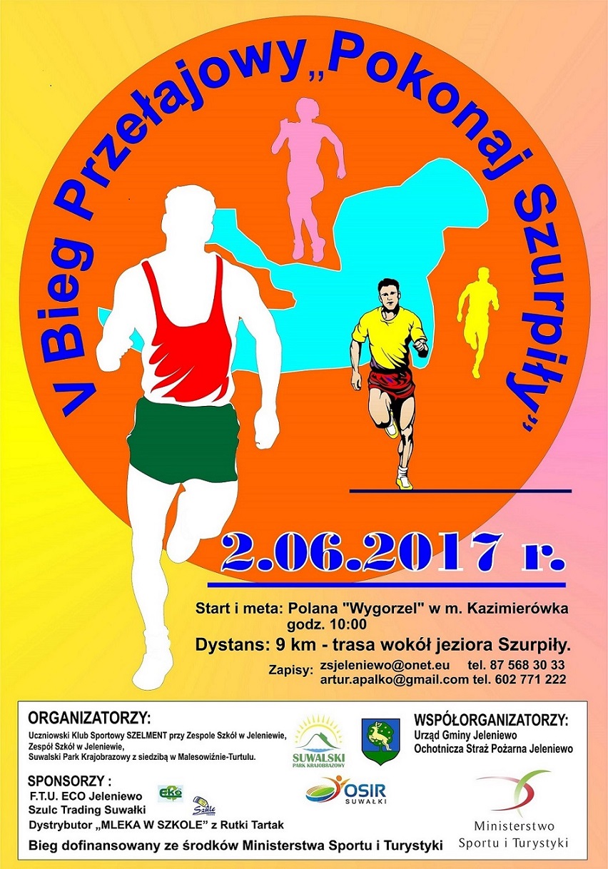 - Dokładamy wszelkich starań, aby zachęcić do udziału w tej biegowej imprezie jak największą liczbę uczestników, zarówno uczniów jak i osoby ze społeczności lokalnej i nie tylko - informuje Artur Apalko, nauczyciel ZS w Jeleniewie i działacz UKS Szelment, znany maratończyk. - W roku 2016 wzięło w nim udział 95 uczestników, w tym uczniowie z Gimnazjum w Rutce Tartak.