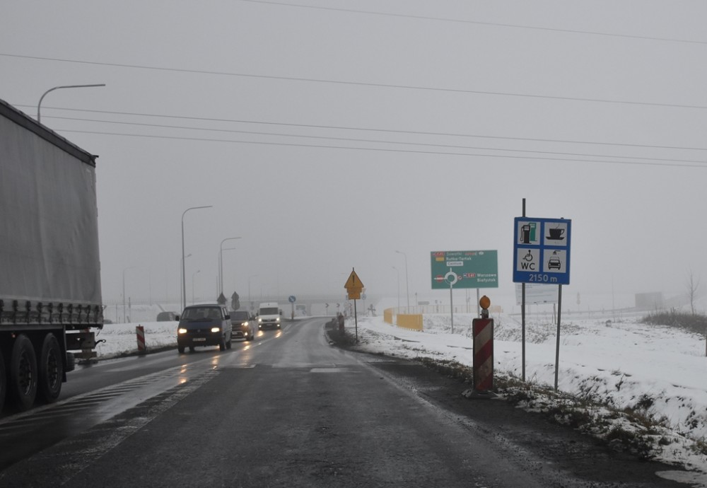 Pojazdy zmierzające w kierunku granicy jadą wiaduktem, a tuż za nim korzystają z prowizorycznego rozwiązania, skręcają w lewo i fragmentem węzła zjeżdżają w krajową „8”. Taki stan rzeczy ma potrwać jeszcze tylko kilka tygodni.