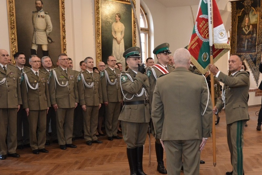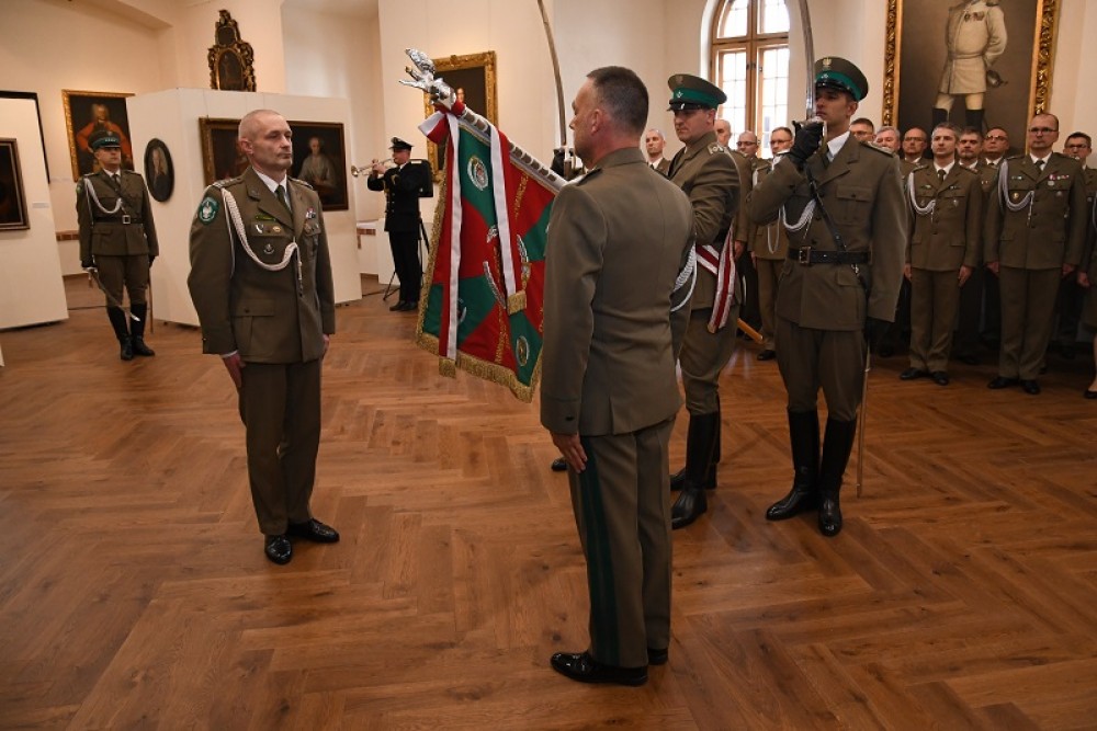 Dotychczasowy Komendant WarmiÅ„sko–Mazurskiego OddziaÅ‚u Straży Granicznej gen. bryg. SG Robert Inglot pożegnaÅ‚ siÄ™ ze sztandarem OddziaÅ‚u. Nowym szefem W-MOSG zostaÅ‚ pÅ‚k SG Tomasz ZybiÅ„ski, którego przedstawiÅ‚ ZastÄ™pca Komendanta GÅ‚ównego Straży Granicznej gen. bryg. SG Jacek Bajger.