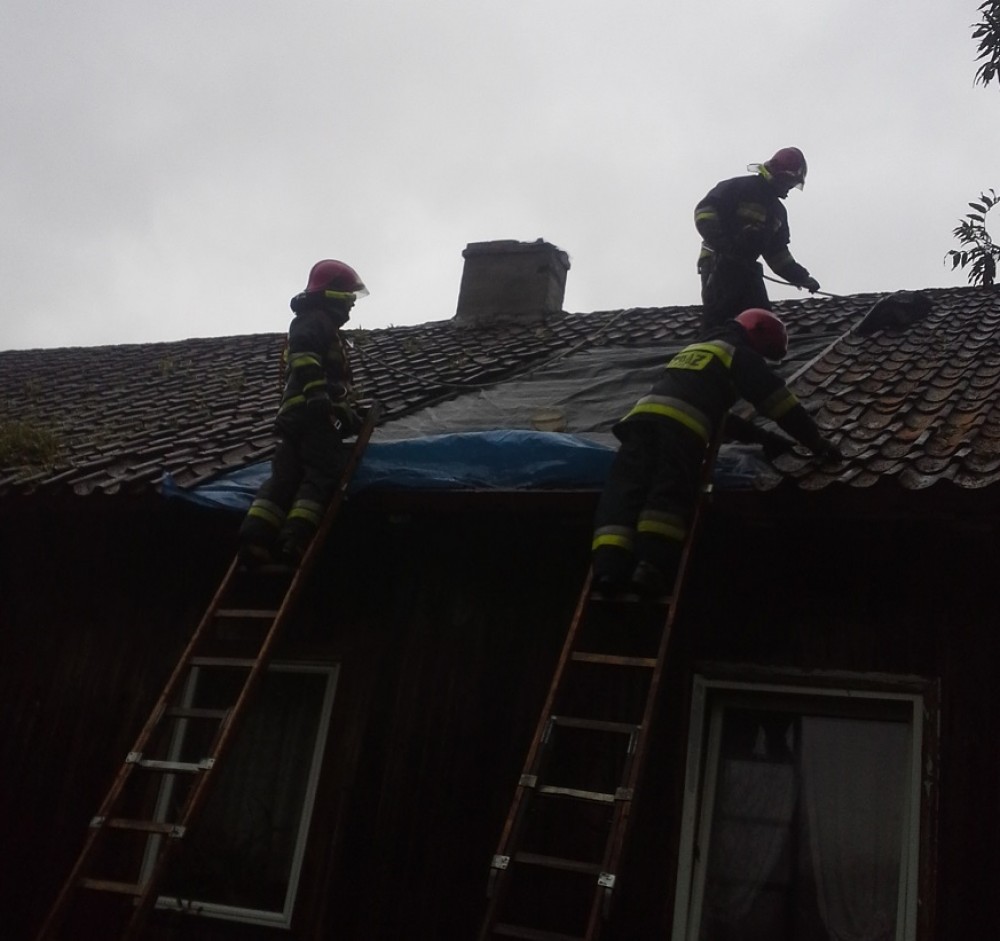 Suwalscy strażacy zabezpieczali blachę zerwaną z dwóch dachów, usuwali drzewa z dróg w Białej Wodzie oraz na trasie Sejny-Sztabinek.