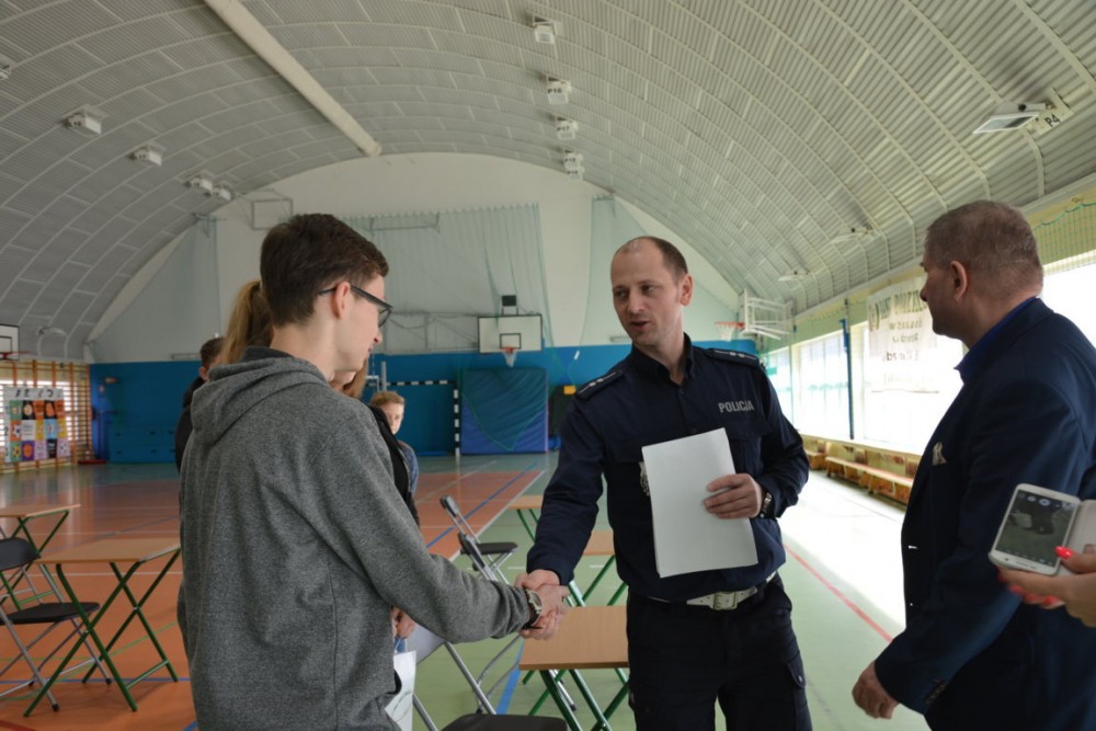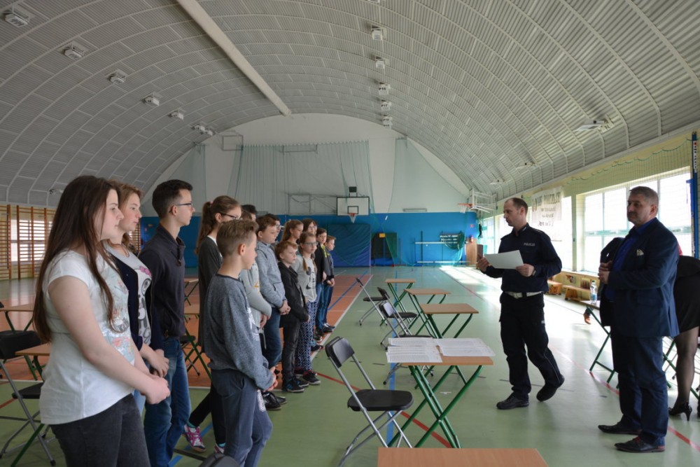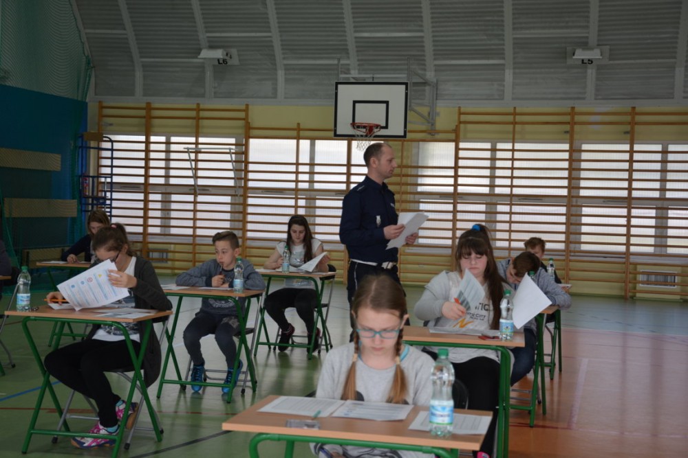 Dzisiaj (07.04) suwalscy policjanci współorganizowali eliminacje do Ogólnopolskiego Turnieju Bezpieczeństwa w Ruchu Drogowym szkół z terenu gminy Suwałki. Konkurs odbył się w Szkole w Płocicznie -Tartak. Uczniowie zmagali się z testem wiedzy, dotyczącym przepisów drogowych, przygotowanym przez mundurowych.