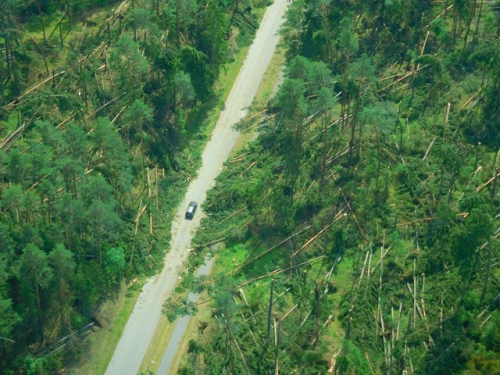 W piątek, 17 czerwca nad północno-wschodnią Polską przeszły gwałtowne nawałnice. Wiatr wywrócił i połamał setki drzew w lasach. Leśnicy szacują że szkody przekroczyły 600 tysięcy metrów sześciennych drewna.