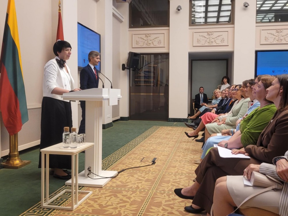 Pierwsza Dama mówiÅ‚a o litewskich szkoÅ‚ach zakÅ‚adanych za granicÄ… i ich znaczeniu.
