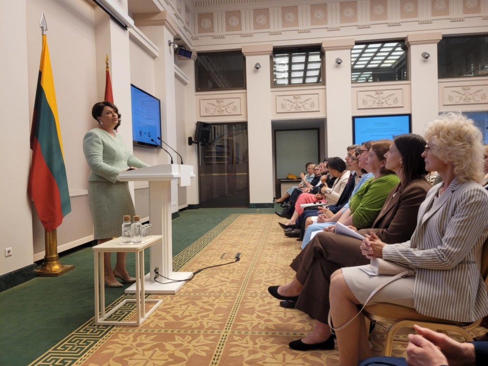 Pierwsza Dama podziÄ™kowaÅ‚a wszystkim litewskim szkoÅ‚om dziaÅ‚ajÄ…cym za granicÄ… za ich wkÅ‚ad w zachowanie litewskiej tożsamoÅ›ci, podkreÅ›lajÄ…c znaczenie szkóÅ‚ litewskich w ksztaÅ‚towaniu tożsamoÅ›ci narodowej i utrzymywaniu żywych wiÄ™zi z LitwÄ….