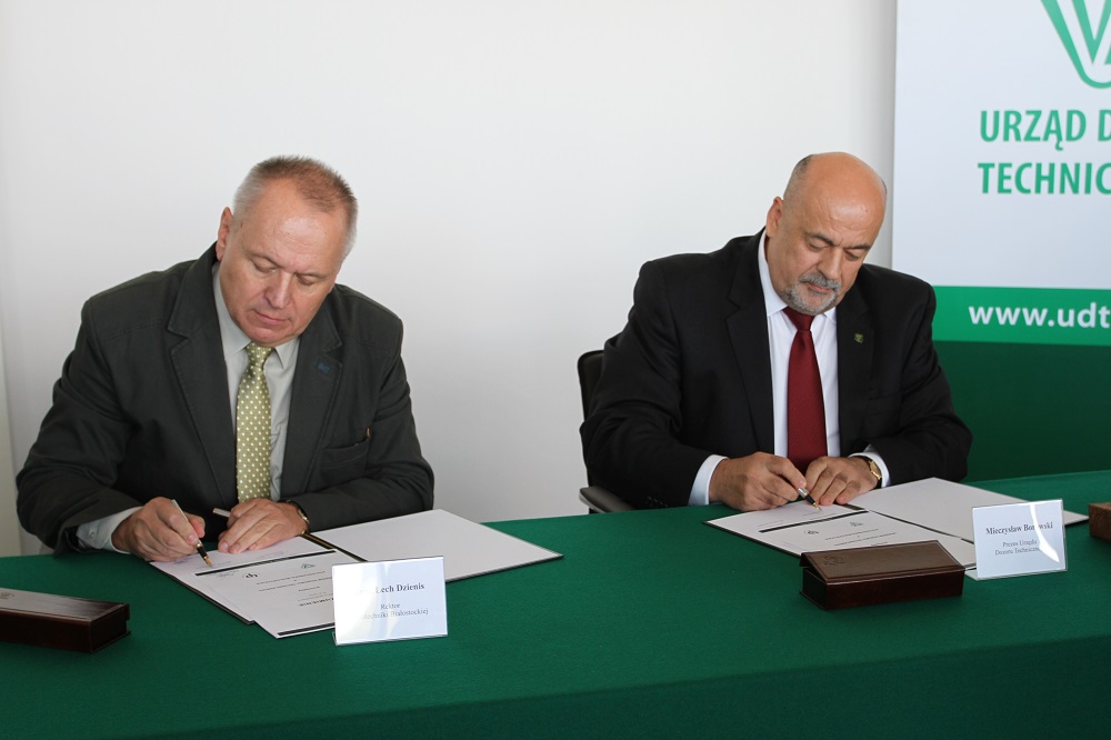 Bezpieczeństwo techniczne – to główny obszar współpracy pomiędzy Politechniką Białostocką, a Urzędem Dozoru Technicznego. Współpracę naukową, badawczą i edukacyjną obejmuje umowa, jaką podpisali w środę, 30 września, prezes Urzędu Dozoru Technicznego Mieczysław Borowski oraz rektor Politechniki Białostockiej prof. Lech Dzienis.