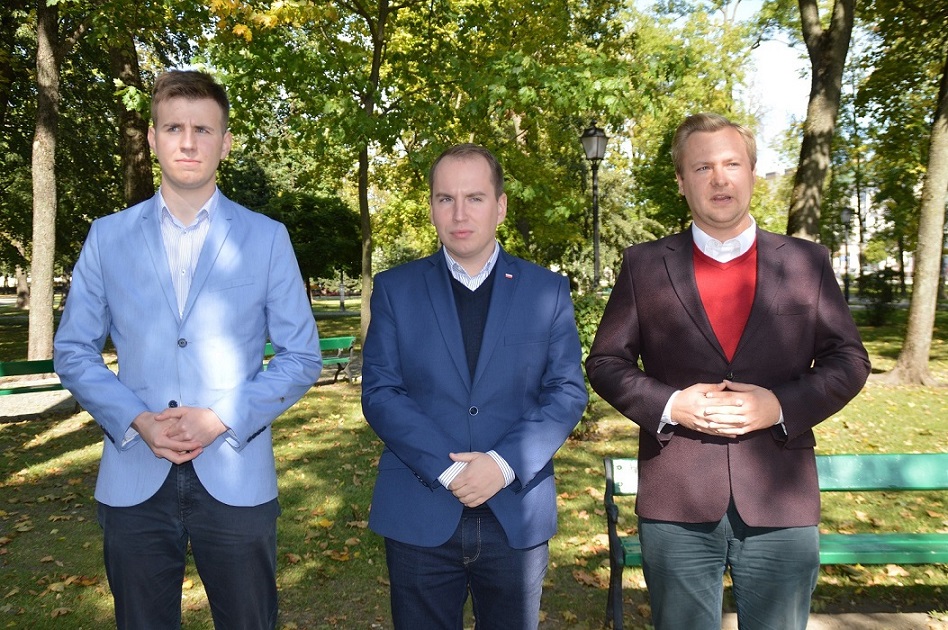 W poniedziałek w Parku Konstytucji 3 Maja w Suwałkach konferencję prasową zorganizował wiceminsiter cyfryzacji, poseł i kandydat PiS do Sejmu RP Adam Andruszkiewicz.
