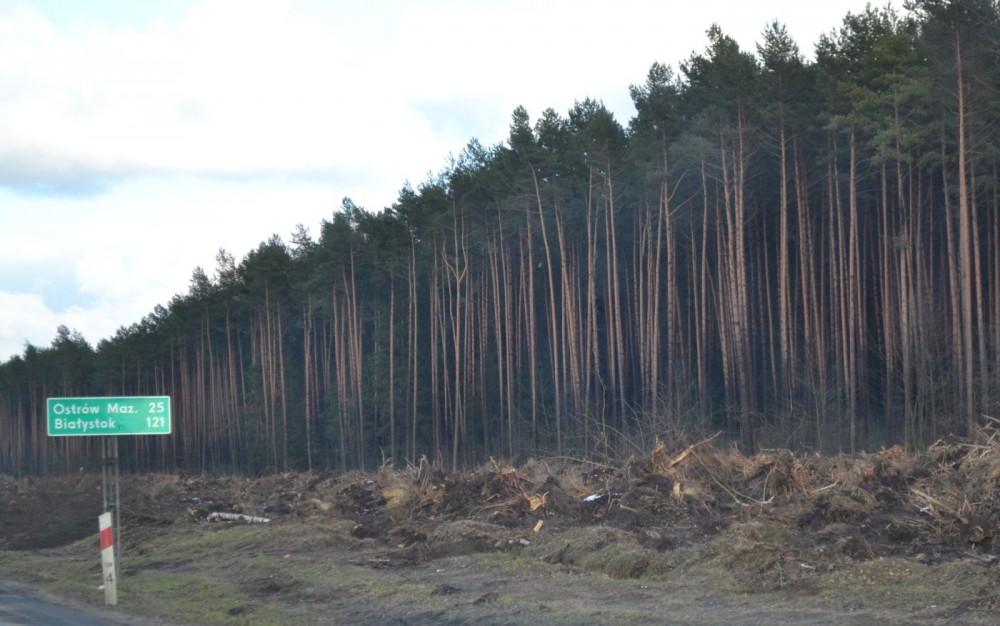 Dalej, na odcinku od granicy województwa podlaskiego do Wyszkowa, prowadzona jest już wycinka. Jednopasmowa droga do niedawna przebiegała tam przez gęsty las. Obecnie z jednej i z drugiej strony jezdni nie ma już drzew. Wkrótce na plac budowy wjadą koparki.