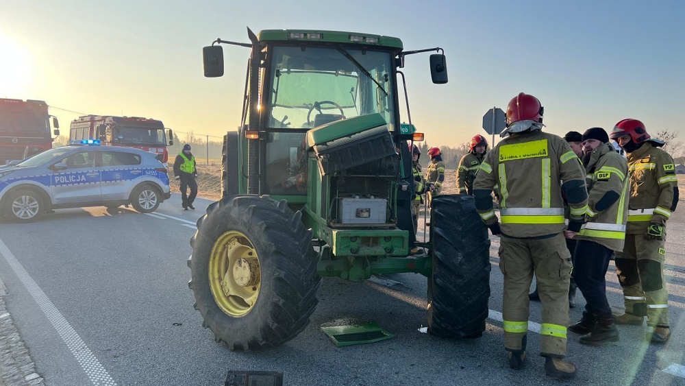 Na Drodze Wojewódzkiej nr 653 w Krasnopolu doszło do zderzenia samochodu dostawczego z ciągnikiem.