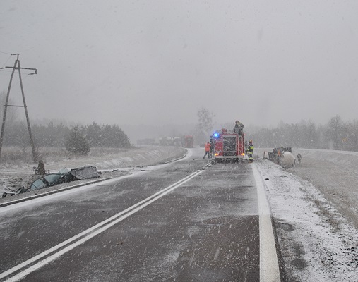 W środę kilka minut po 7.00 dyżurny Komendy Powiatowej Policji w Augustowie został poinformowany o wypadku drogowym. Do zdarzenia doszło w miejscowości Sztabin, na drodze krajowej nr 8. Wstępne policyjne ustalenia wskazują, że 42 – letni obywatel Ukrainy jechał mercedesem w kierunku Augustowa. Mężczyzna z niewyjaśnionych przyczyn zjechał na przeciwległy pas ruchu i zderzył się czołowo z nadjeżdżającą z przeciwka ciężarową scanią.