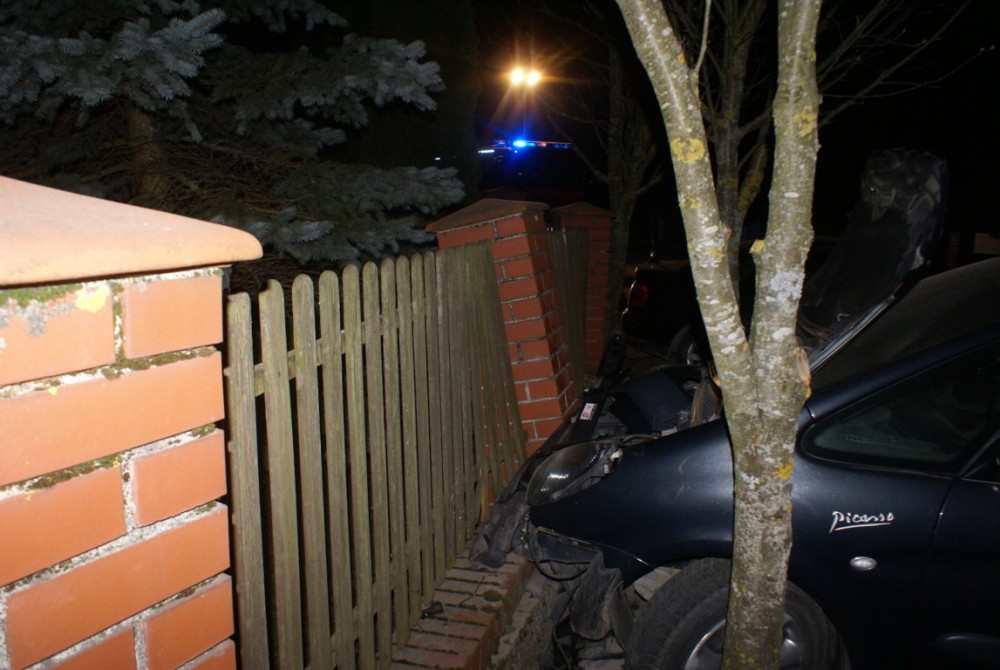 Citroen uderzyÅ‚ w ogrodzenie jednej z posesji. KierujÄ…ca autem 24- letnia kobieta oraz 7- letni chÅ‚opiec, który z niÄ… jechaÅ‚, trafili do szpitala.