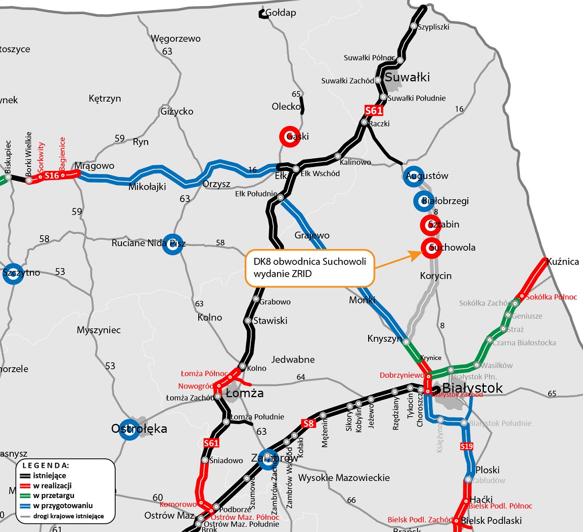 Rządowy Program Budowy 100 obwodnic na lata 2020 - 2030 zakłada wykonanie pięciu inwestycji na terenie woj. podlaskiego. Dwie z nich obwodnica Sztabina i Suchowoli przeszły we wrześniu br. do stanu realizacji. Obie powstają w ciągu drogi krajowej nr 8 (DK8). Trzy obwodnice Białobrzegów, Augustowa i Zambrowa, są etapie przygotowania.