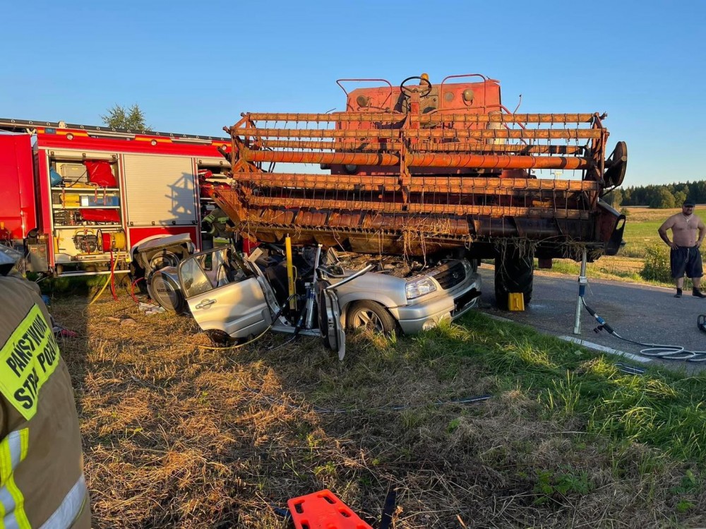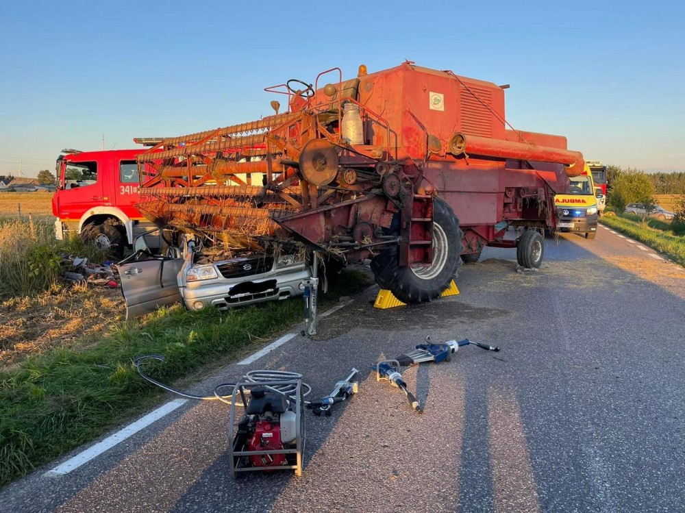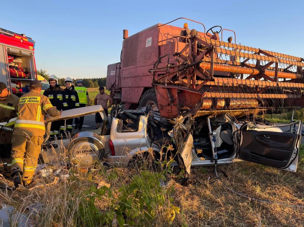 Do zderzenia samochodu osobowego z kombajnem zbożowym doszło po 19.00 w Pieckach, na trasie Suwałki – Filipów.