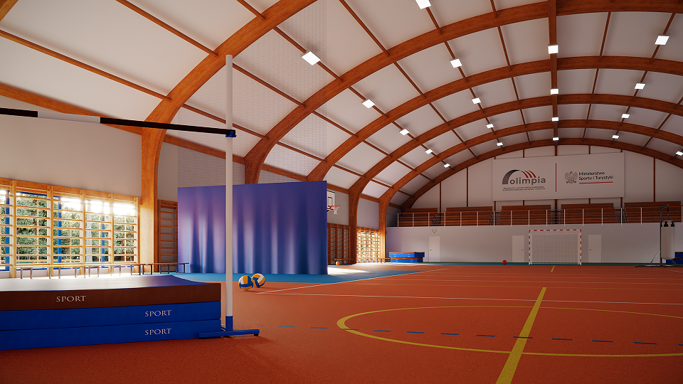 Obiekt wyposażony zostanie w instalację elektryczną i oświetlenie wewnętrzne z oprawami LED, instalację fotowoltaiczną, instalację grzewczą zasilaną paliwem gazowym oraz instalację wentylacji i klimatyzacji. Zostanie wykonane zaplecze sanitarno-szatniowe o powierzchni ponad 100 m2. W hali znajdzie się mobilna strzelnica laserowa (wirtualna) na minimum 4 stanowiska strzeleckie. Zostanie zakupione wyposażenie i sprzęt sportowy.
