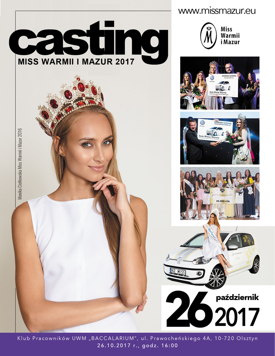 W czwartek 26.10.2017 o godz. 16:00 w Olsztynie odbędzie się ostatni casting do konkursu Miss Warmii i Mazur 2017.