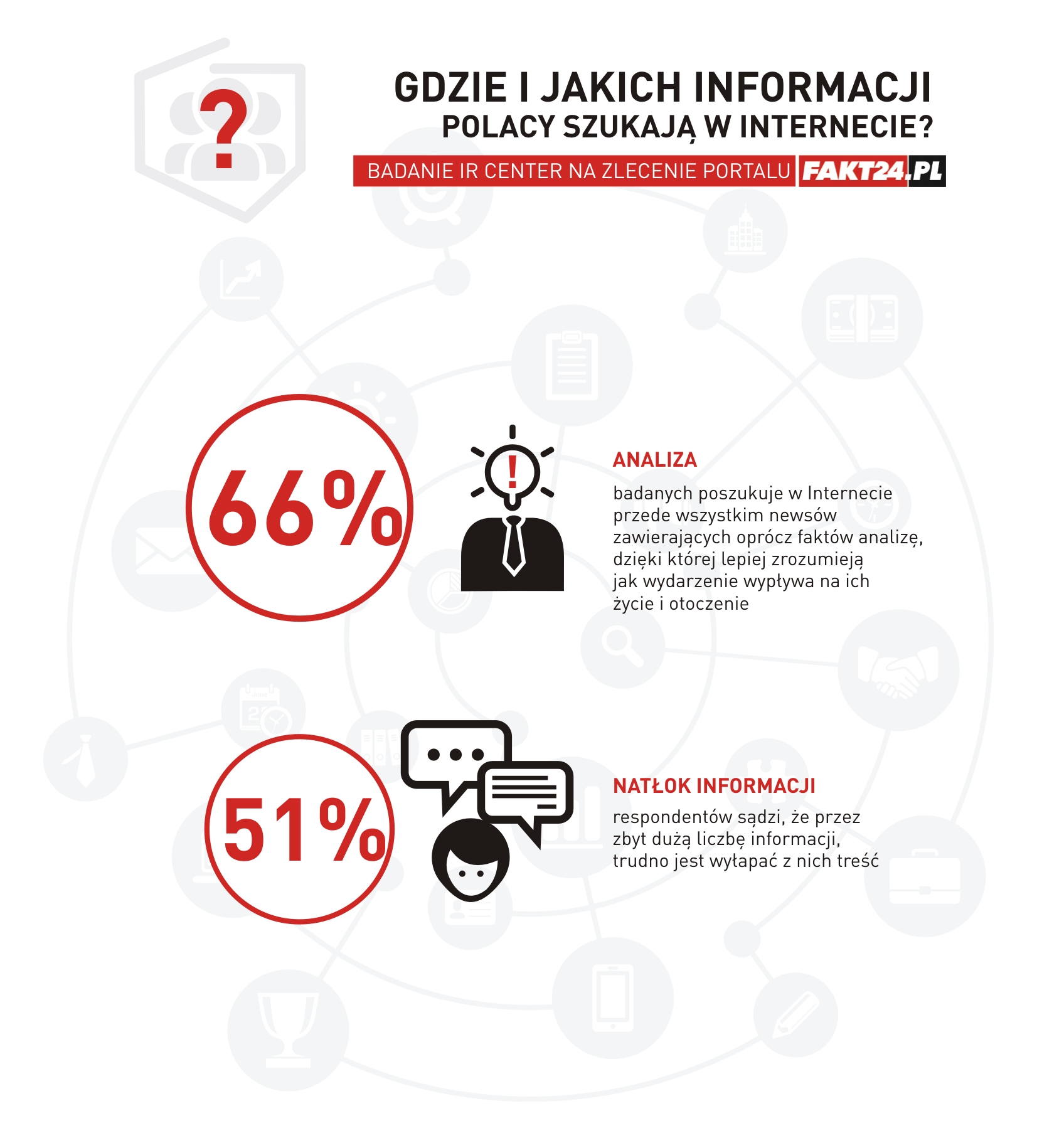 Jak pokazują badania przeprowadzone przez IR Center na reprezentatywnej grupie internautów, aż 2/3 respondentów poszukuje przede wszystkim newsów, które oprócz suchych faktów zawierają również krótką analizę, która uwzględnia osobistą perspektywę użytkownika i tłumaczy, w jaki sposób opisywane wydarzenie wpływa na jego życie