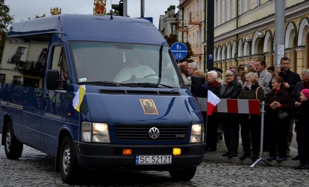Tym razem właśnie w Suwałkach, witana przez biskupów ełckich Jerzego Mazura i Romualda Kamińskiego, Królowa Polski rozpoczęła wizytę w diecezji ełckiej, która potrwa do 7 czerwca 2014 roku.