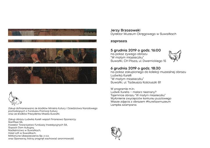 Jerzy Brzozowski, dyrektor Muzeum Okręgowego w Suwałkach zaprasza na pokaz obrazu Ludwika Kurelli: "W małym miasteczku ".