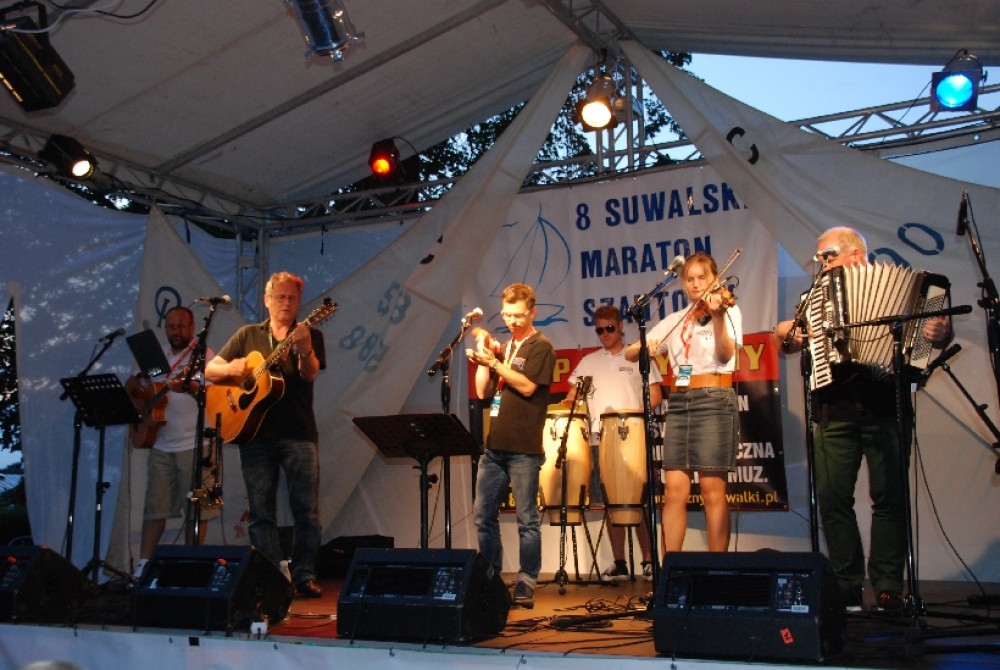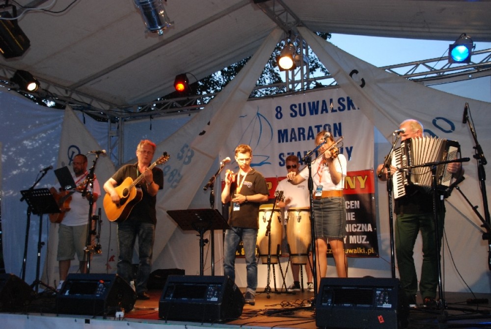Kilka tysięcy osób bawiło się w piątkowy wieczór nad suwalskim zalewem Arkadia na VIII Suwalskim Maratonie Szantowym. Jak się okazuje żeglarskie pieśni nad Czarną Hańcza mają duże grono znawców i zwolenników. A że wykonawcy to krajowa i nie tylko czołówka tego rodzaju muzyki – zabawa była przednia.