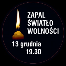 Hołd bohaterom demokratycznej Polski 13 grudnia można wyrazić zapalając o godz. 19.30 Światło Wolności – świece w oknach budynków użyteczności publicznej oraz w Państwa domach.