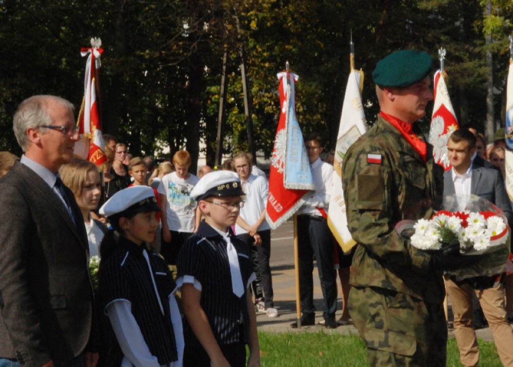 Uroczystość pod pomnikiem „Bohaterom wrzeÅ›nia 1939” poprzedziÅ‚ dźwiÄ™k syren. ByÅ‚a też modlitwa za zmarÅ‚ych, apel polegÅ‚ych, salwa honorowa i chwila zadumy kiedy popÅ‚ynęły dźwiÄ™ki znanej pieÅ›ni wojskowej z roku 1863 autorstwa WÅ‚adysÅ‚awa Tarnowskiego „Jak to na wojence Å‚adnie...”