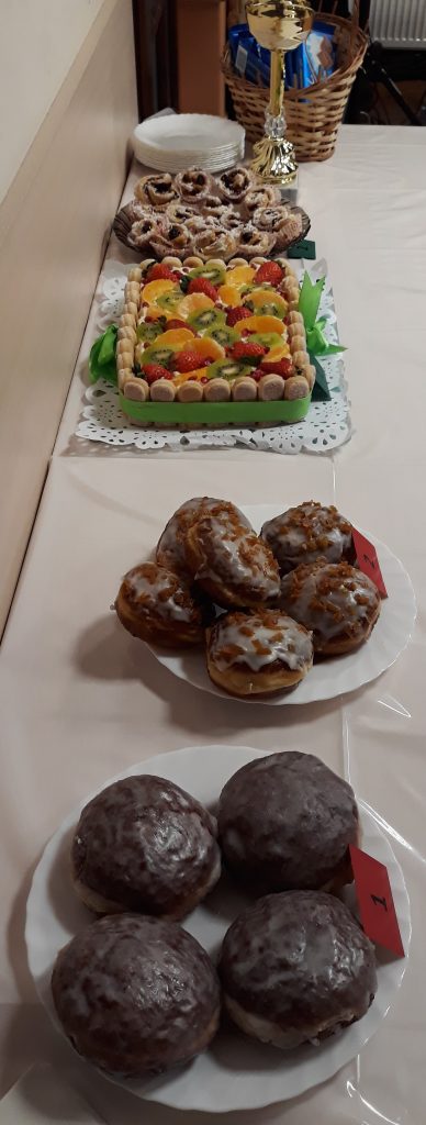 Miano najlepszego wypieku karnawaÅ‚owego otrzymaÅ‚ wspaniaÅ‚y torcik pani Leokadii RóżyÅ„skiej, która otrzymaÅ‚a również II miejsce w kategorii "PÄ…czek". TrzeciÄ… nagrodzonÄ… osobÄ… zostaÅ‚a pani Marianna Orchowska, której drożdżowe różyczki zajęły drugie miejsce w kategorii "Wypiek KarnawaÅ‚owy". Zdobywczynie pierwszego miejsca w obu kategoriach otrzymaÅ‚y również pamiÄ…tkowe puchary Wójta Gminy SuwaÅ‚ki.