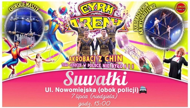 Widowisko cyrku Arena już w niedzielę, 7 lipca, o godzinie 15.00 w Suwałkach. Cyrk rozbije swój namiot przy ul. Nowomiejskiej.
