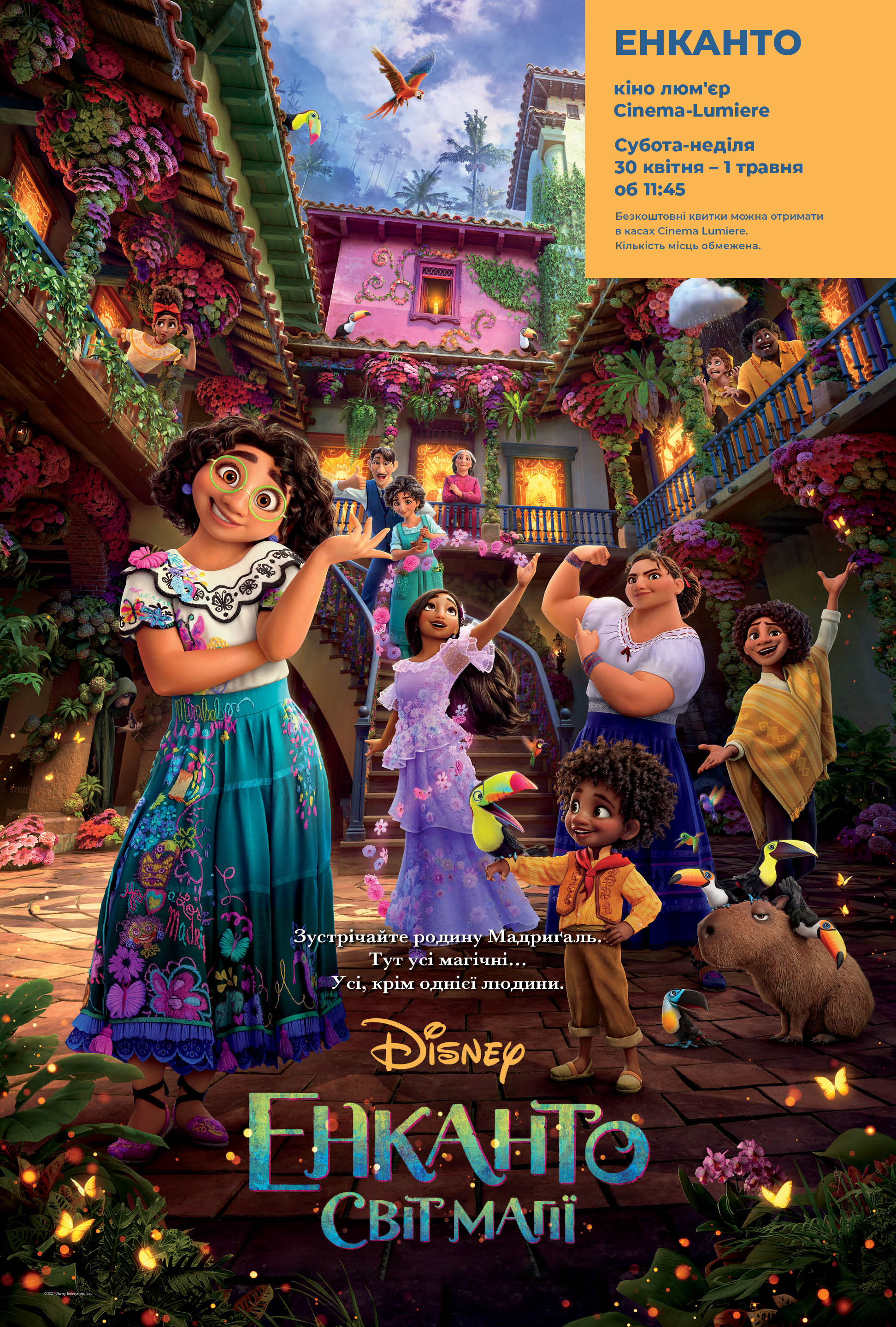Нова анімація «Енканто: Світ магії» від Walt Disney Animation Studios розповідає історію про незвичайну родину Мадриґаль. Вони живуть у чарівному будиночку, захованому в горах Колумбії, у жвавому містечку під назвою Енканто. Магія Енканто благословила кожну дитину в родині унікальним подарунком: від суперсили до дару зцілення. Кожну дитину...окрім Мірабель. Однак, коли дівчина з'ясовує, що магії Енканто загрожує небезпека, Мірабель вирішує, що саме вона, єдина звичайна дитина родини Мадриґаль, має стати останньою надією на порятунок містечка.