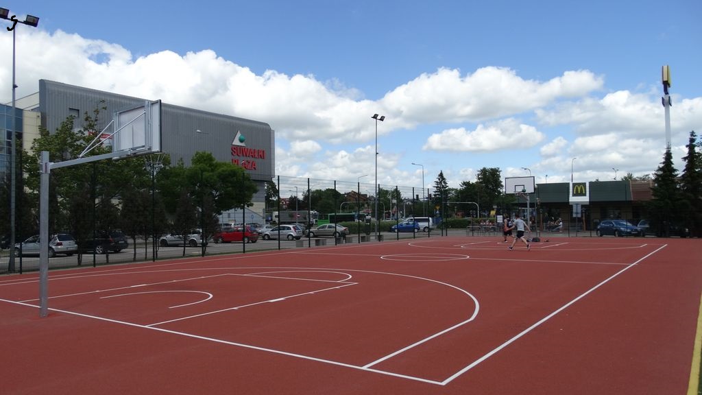 Wyremontowane boiska Suwalskiej Spółdzielni Mieszkaniowej przy restauracji McDonald’s są otwarte zaledwie od tygodnia, a już cieszą się sporym zainteresowaniem. Odwiedziliśmy je w porze lekcyjnej, a mimo to nie brakowało na nich amatorów koszykówki i piłki nożnej.