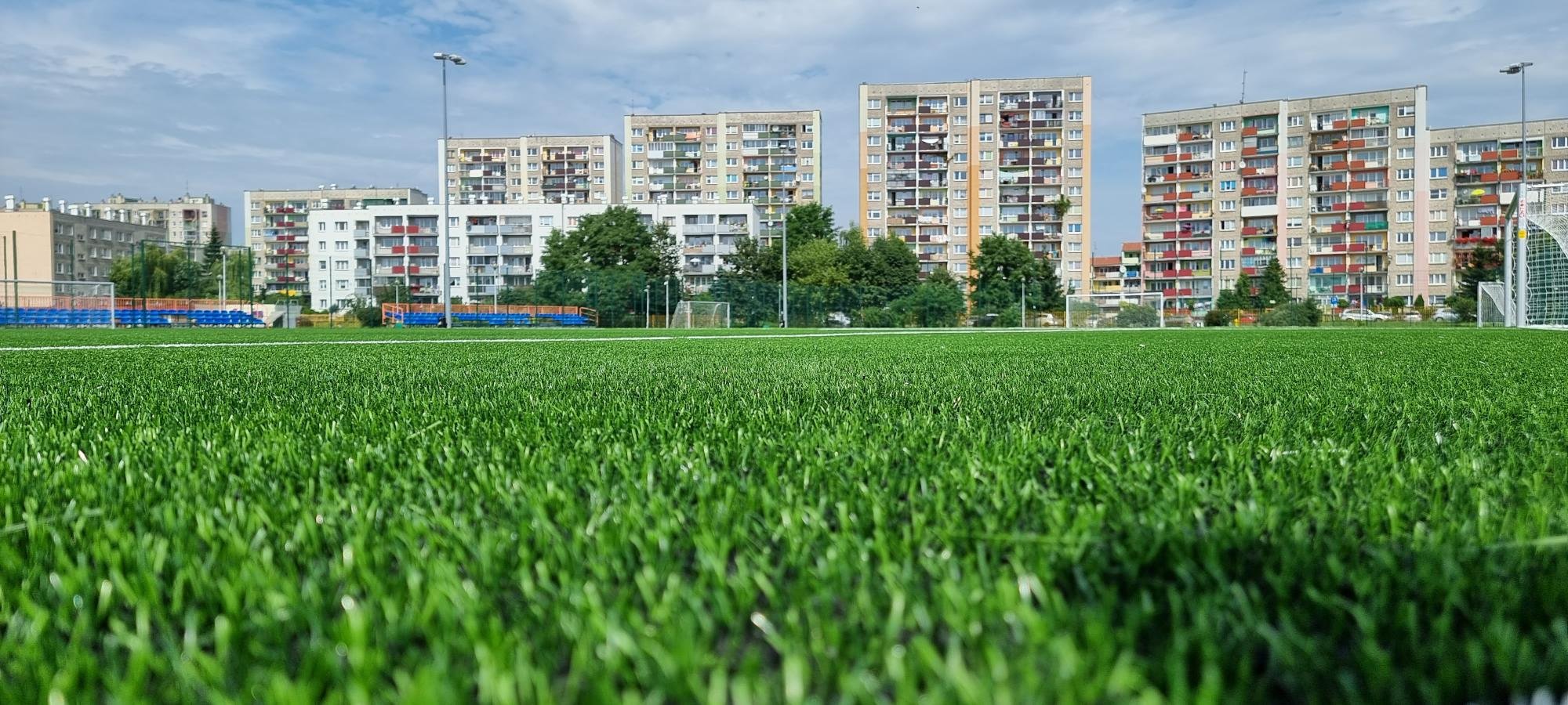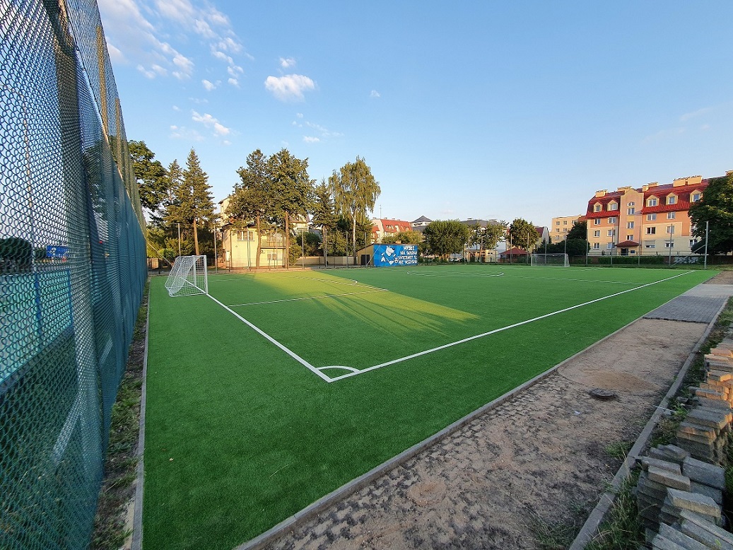 W Szkole Podstawowej nr 7 remont nawierzchni boiska z trawy syntetycznej o wym. 52 x 96 m kosztował 1,672 mln zł.