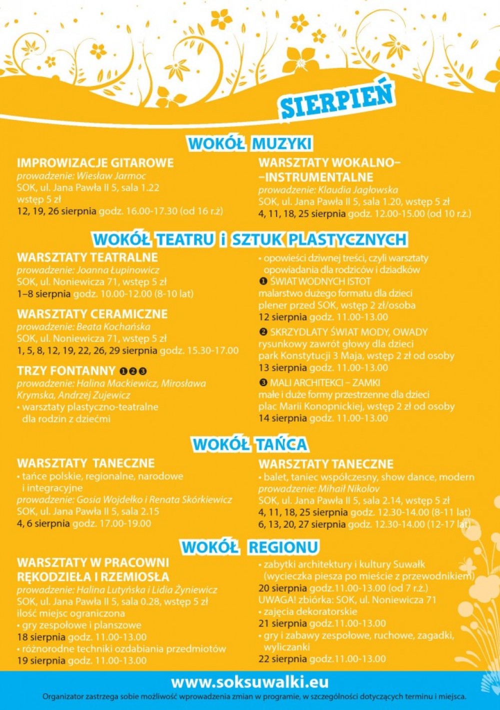 12, 19, 26 sierpnia, godz. 16.00-17.30 |